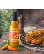 Laget med fersken og amarillo, pluss ingefær, lime og en blanding av gul habanero og scotch bonnet for kompleks varme.