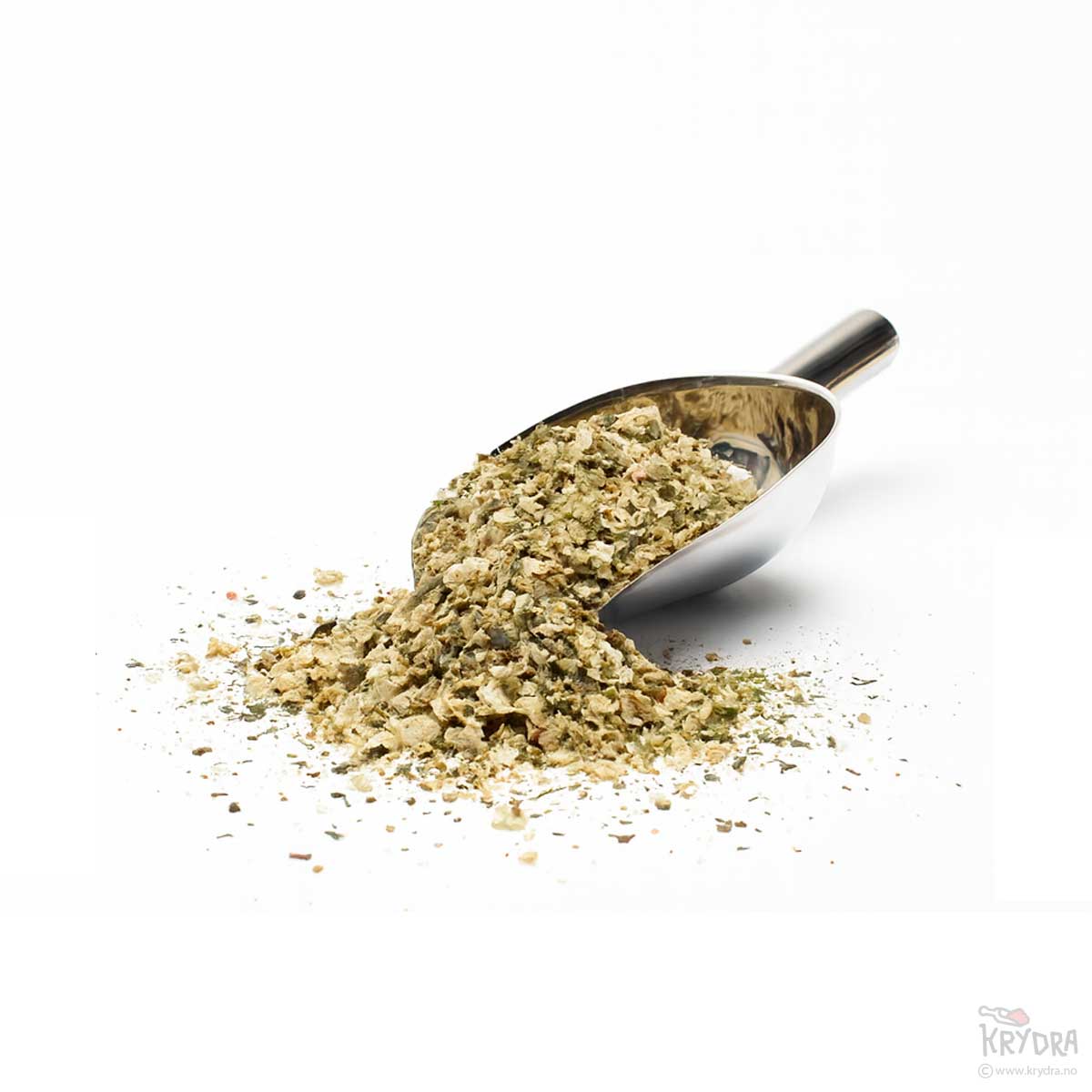 Bruk den som et krydder til stekt eller ovnsbakt fisk, dryss den over grønnsaker før steking, eller rør den inn i salater og lune retter når du vil ha et mildt smaksløft med toner av hav, urter og sitrus.