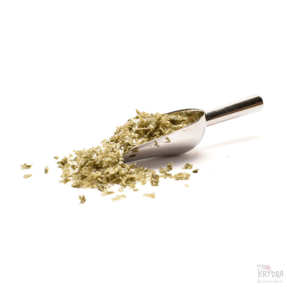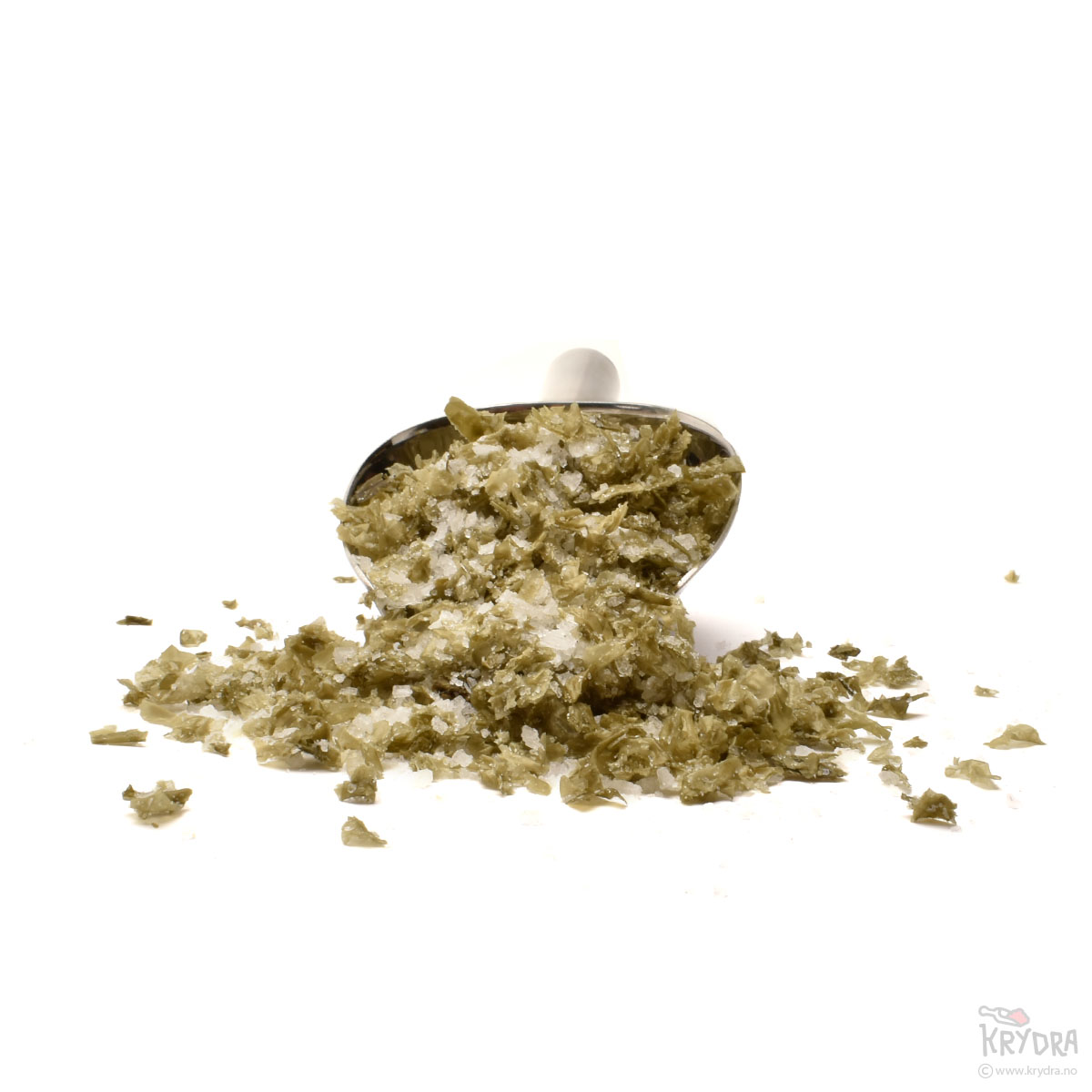 Sjøgrønt flaksalt er en naturlig smaksforsterker som kombinerer sprøtt havsalt med tørket havsalat – en grønnalge kjent for sin milde og maritime smak. Resultatet er et vakkert grønnskjær i flakene og et elegant løft i smaken, perfekt som finishing-salt på både fisk, grønnsaker og smørbrød.